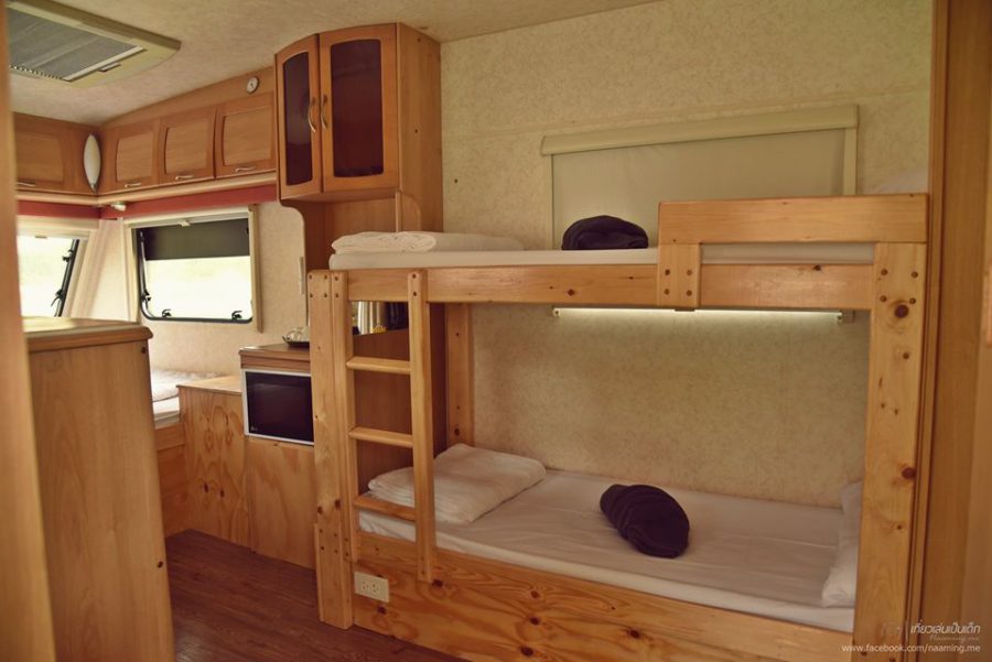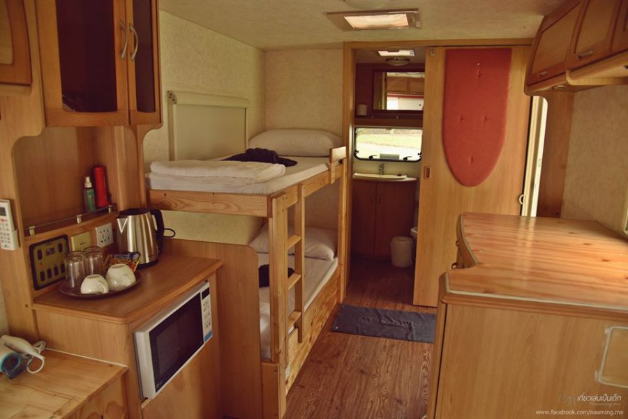 ที่พักสไตล์รถบ้านที่ตั้งอยู่ท่ามกลางธรรมชาติ บรรยากาศภายในรถบ้านตกแต่งแบบกระทัดรัด พร้อมด้วยสิ่งอำนวยความสะดวกที่พร้อมให้บริการ ที่นี่ไม่เพียงแค่มีห้องพักสไตล์รถบ้านให้บริการเพียงเท่านั้น ยังมีในส่วนของ เต็นท์ และ บ้านพักก ไว้รองรับเหล่านักท่องเที่ยวอีกด้วย