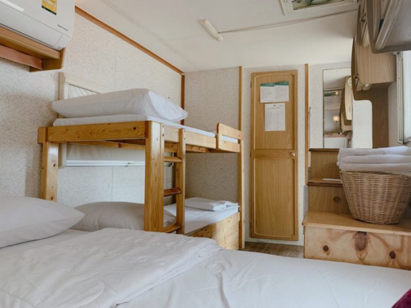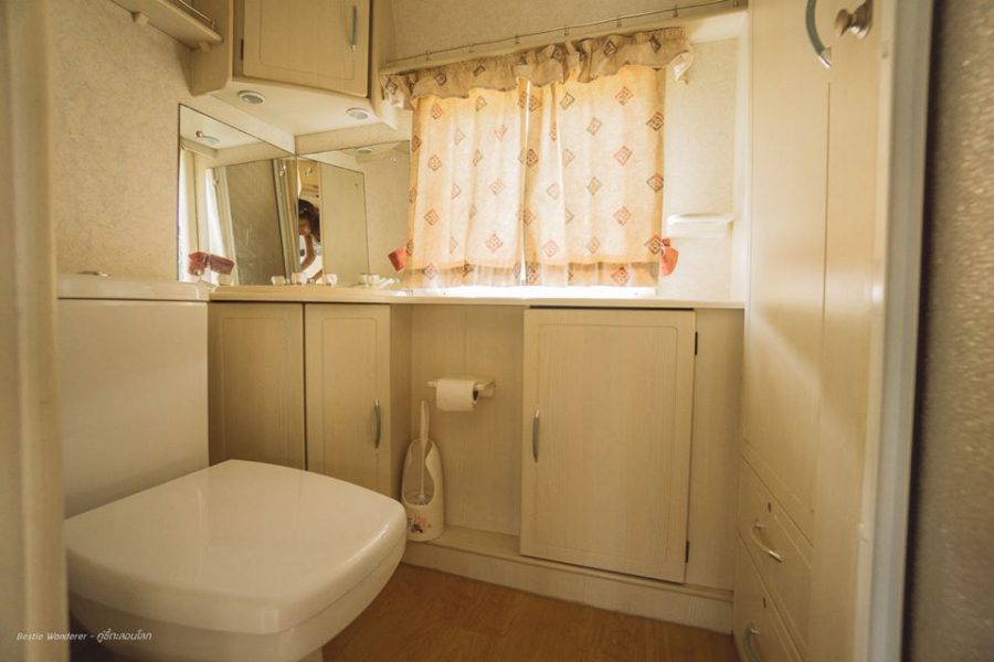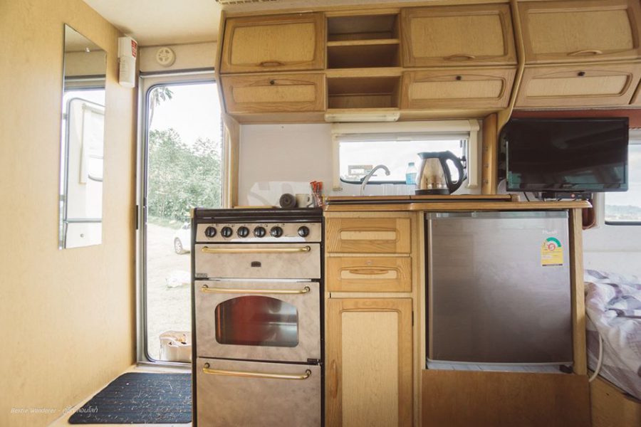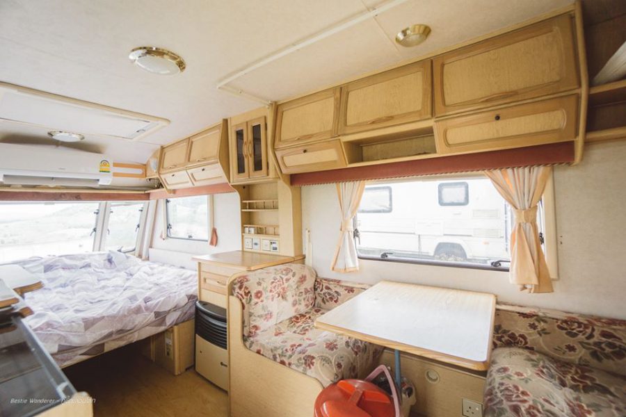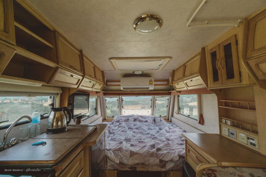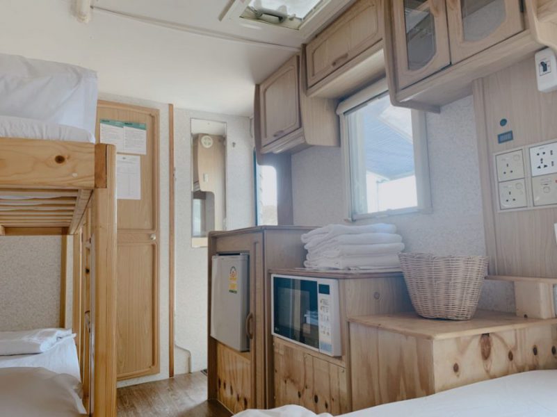 ที่พักสไตล์รถบ้านแห่งนี้ตั้งอยู่ริมทะเล ให้อารมณ์ราวกับว่าได้หลุดเข้าไปในโลกของซีรีย์ฝรั่งประมาณนั้น และรถบ้านทุกคันสามารถมองเห็นวิวทะเลได้ 180 องศาทุกทัน ที่นี่จะมีรถบ้านไว้ให้บริการ 3 คัน ภายในตกแต่งได้ลงตัวด้วยโทนสีขาว พร้อมทั้งสิ่งอำนวยความสะดวกที่ครบครัน