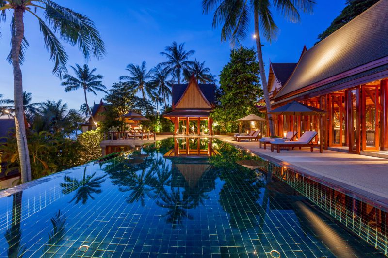 โฟร์ซีซั่นส์รีสอร์ท เกาะสมุย ตั้งอยู่บนเนินเขายื่นออกไปในมหาสมุทร เป็นหนึ่งสถานที่พักผ่อนของไทยที่ไม่เหมือนใคร ได้รับการออกแบบด้วยการผสมผสานที่ลงตัวของงธรรมชาติที่งดงาม ที่นี่ได้รับการจัดอันดับให้เป็นโรงแรมหรูที่ดีที่สุดแห่งหนึ่งของประเทศไทย วิลล่าทุกหลังมีดาดฟ้ากลางแจ้งส่วนตัว มีสระว่ายน้ำส่วนตัว และเพลิดเพลินไปกับโยคะผ่อนคลายไปกับเสียงทะเล และห้องอาหารแบบส่วนตัว