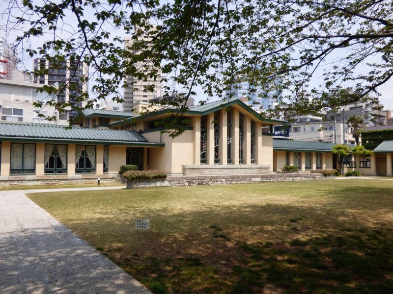 โรงเรียนสตรี Jiyu Gakuen ซึ่งเปิดให้ประชาชนทั่วไปได้รับมอบหมายจาก Yoshikazu Hani ผู้ซึ่งต้องการสร้างโรงเรียนในโตเกียวที่ให้ความรู้สึกเหมือนอยู่บ้าน ไรท์ประสบความสำเร็จด้วยการเพิ่มลานภายในที่สวยงาม กรอบหน้าต่างที่มีลวดลายสวยงาม และการตกแต่งอื่นๆ เช่น โคมไฟระย้าที่สวยงามในห้องอาหาร มองอย่างใกล้ชิดแล้วคุณจะสังเกตเห็นมิติที่ไม่ธรรมดาของโรงเรียนเก่า – ไรท์ออกแบบอาคารนี้ให้เป็นอาคาร “ขนาดเล็ก”