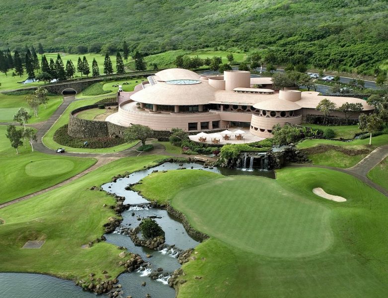 ถ้า Jetsons เล่นกอล์ฟ ที่นี่คือที่ที่พวกเขาจะออกรอบ การเปิดเผยข้อมูลโดยสมบูรณ์ – Frank Lloyd Wright เสียชีวิตเมื่อถึงเวลาที่ King Kamehameha Golf Course Clubhouse สร้างขึ้น แต่บ้านหลังนี้ถูกจำลองขึ้นในบ้านที่ Wright ได้ออกแบบสำหรับ Arthur Miller ที่ต้องการสร้างบ้านให้ Marilyn Monroe ภรรยาของเขา เมื่อทั้งคู่หย่ากัน แผนการก็ถูกยกเลิก ในปี พ.ศ. 2531 กลุ่มนักลงทุนชาวญี่ปุ่นได้ซื้อแผนดังกล่าวและใช้แผนดังกล่าวเพื่อสร้างสนามกอล์ฟและคลับเฮาส์ โครงการนี้ดูแลโดย John Rattenbury อดีตผู้ช่วยของ Wright และรวมเอาคุณสมบัติมากมายที่เกี่ยวข้องกับ Wright เช่นส่วนใต้ดินและสกายไลท์กระจกสี