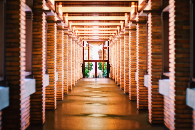 “สำนักงานใหญ่จอห์นสันแวกซ์” ที่ทำให้เราเหมือนหลุดไปอยู่ในหนัง Sci-fi ย้อนยุค ผลงานชิ้นเอกของวิสคอนซินชิ้นนี้ไม่น่าตื่นเต้นน้อยไปกว่านี้ ในปี 1936 นักธุรกิจชาวอเมริกัน HF Johnson Jr มอบหมายให้ไรท์ออกแบบ “อาคารสำนักงานที่ดีที่สุดในโลก” ไม่ใช่เรื่องแปลกอย่างแน่นอน ด้วยหน้าต่างที่ไม่ได้ทำจากกระจกแต่ทำจากท่อแก้ว Pyrex ระยะทาง 70 กม. ไรท์ได้ติดตั้งเสารูปต้นไม้ภายในอันสง่างามซึ่งช่วยลดความจำเป็นในการผนังภายใน และใช้อิฐหลายพันก้อนที่คัดเลือกมาโดยเฉพาะสำหรับสีแดงเข้ม ในที่สุดสีแดงเชอโรกีก็กลายเป็นสีประจำตัวของไรท์