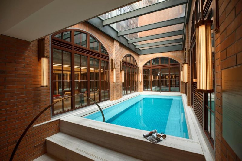 มีมุมสำหรับกาแฟที่ระเบียงริมถนน น้ำชายามบ่ายในล็อบบี้ รับประทานอาหารที่ Tang Court ที่ได้รับดาวมิชลินสามดวง สิ่งอำนวยความสะดวกมีมากมาย สระน้ำอุ่นในร่มขนาด 25 เมตร ฟิตเนสเซ็นเตอร์ขนาดใหญ่และ Chuan Spa ซ่อนตัวอยู่ที่ชั้นล่าง ให้บริการทรีตเมนต์ตามธาตุทั้งห้าของ Wu Xing ได้แก่ ไม้ ไฟ น้ำ ดินและโลหะ
