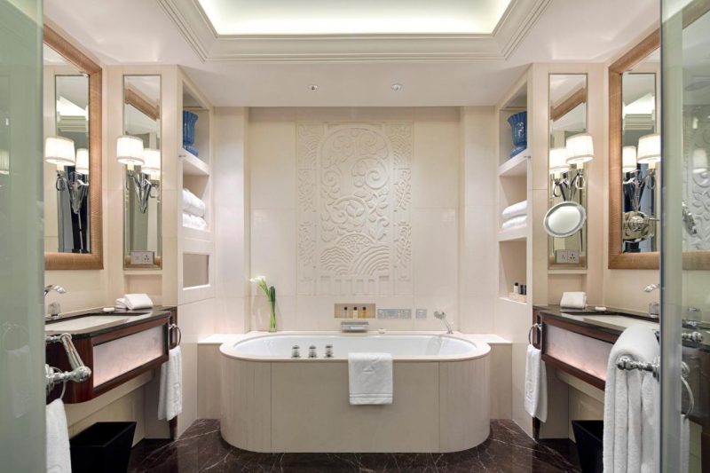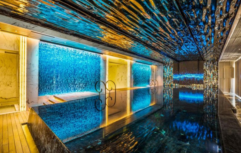 ที่นี่มีสปาระดับ 5 ดาวของ Forbes ห้องพักกรุไม้อันอบอุ่นมีการตกแต่งแบบอาร์ตเดคโคด้วยฉากโลหะและผนังพื้นผิวรูปทรงเรขาคณิต ห้องน้ำหินอ่อน เสริมเสน่ห์ด้วยอ่างอาบน้ำขนาดใหญ่ ผ้าม่านสีทอง และผลิตภัณฑ์อาบน้ำ Asprey ที่มีกลิ่นหอม โซฟาหน้าหน้าต่างเป็นจุดที่เหมาะสมที่สุด เพื่อชมทิวทัศน์เส้นขอบฟ้าอันน่าทึ่งที่เปล่งประกายเป็นสีสันในยามราตรี