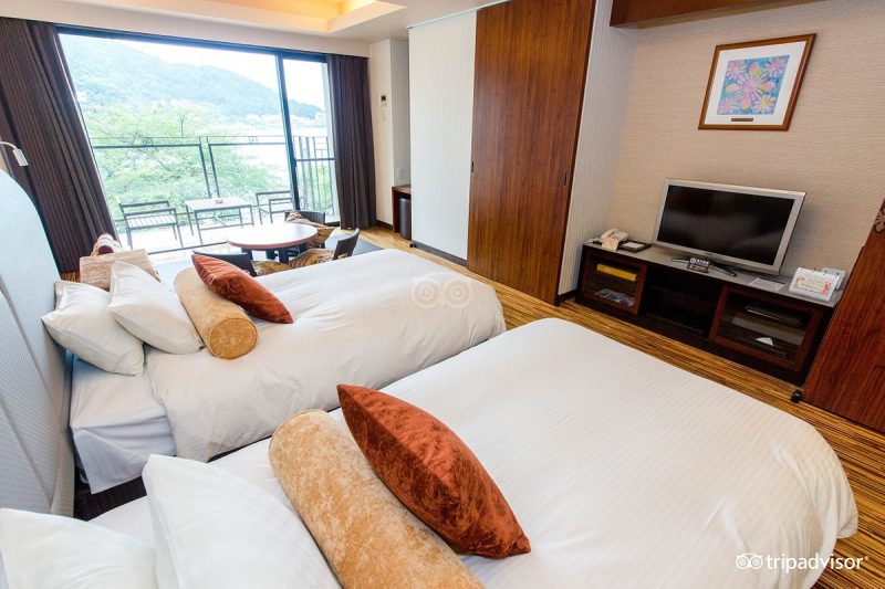 ที่พักอยู่ไม่ไกลจากท่าเรือข้ามฟากซึ่งคุณยังสามารถล่องเรือเพื่อชมทัศนียภาพได้อีกด้วย บ่อน้ำพุร้อนที่ Konanso มีทั้งบ่อน้ำพุร้อนในร่มและกลางแจ้ง พร้อมห้องอาบน้ำส่วนตัว และอ่างแช่เท้าบนดาดฟ้า หากคุณต้องการซื้อของที่ระลึกที่นี่ก็มีให้เลือกซื้อเช่นเดียวกัน นอกจากนี้ยังอาหารหลากหลายคอร์สแบบญี่ปุ่นตามฤดูกาล ให้บริการที่ห้องรับประทานอาหารส่วนตัว หรือรับประทานได้ห้องอาหารเช้า
