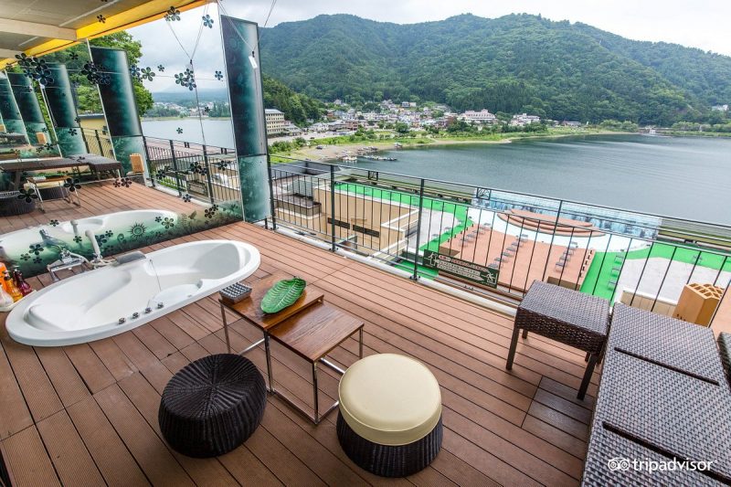 Kukuna ออนเซนสไตล์รีสอร์ท ที่มีวิวธรรมชาติที่งดงามตระการตาของภูเขาไฟฟูจิ และทะเลสาบ เมื่อพักที่นี่คุณจะสามารถชมทิวทัศน์ของภูเขาไฟฟูจิได้จากห้องออนเซนสาธารณะขนาดใหญ่ ที่นี่มีความปลอดภัยสูงมีการแยกส่วนชายหญิงอย่างชัดเจน อ่างอาบน้ำแบบเปิดโล่งให้ความรู้สึกที่ผ่อนคลายแบบสุดๆ นอกจากนี้ยังมีออนเซนส่วนตัวแบบเปิดโล่งให้ห้องพักของคุณเองอีกด้วย ที่นี่มีต้นซากุระอยู่ด้านหน้า คุณจึงสามารถเพลิดเพลินไปกับการชมดอกซากุระ ในฤดูซากุระบานได้ บริการอาหารทั้งแบบเทปันยากิและบุฟเฟต์