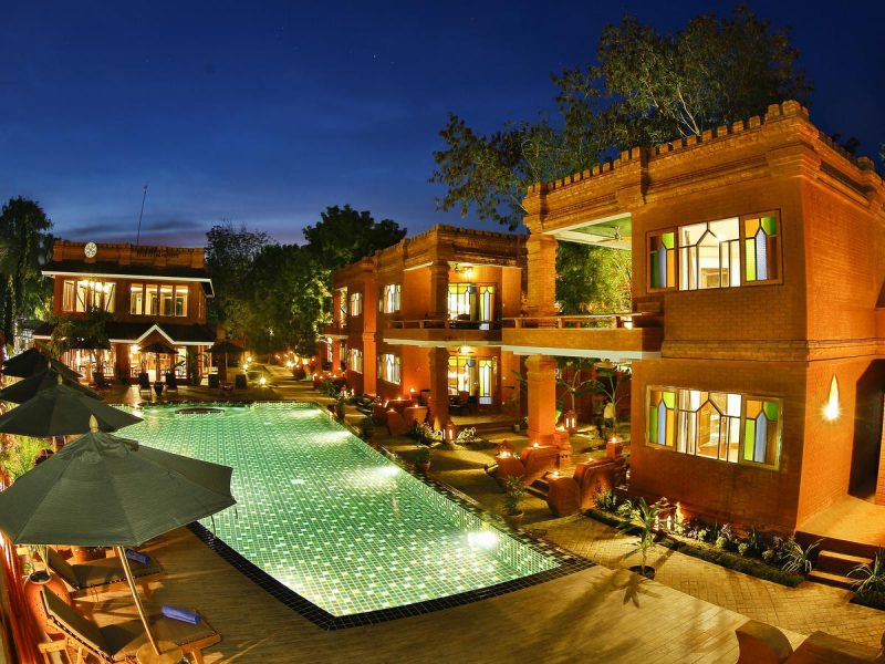 ต่อมาเป็นที่พักใจกลางเมืองพุกาม เดินทางง่าย สะดวกมากๆ อยู่ใกล้สนามบิน บรรยากาศดีดีมาก ตกแต่งสวย มีสิ่งอำนวยความสะดวก อย่างสระว่ายน้ำกลางแจ้ง สปา หรือกิจกรรมภายในที่พักมากมาย และยังมีห้องอาหารสไตล์ท้องถิ่นที่เสิร์ฟอาหารพื้นเมืองของที่นี่เลยด้วย ภายในห้องพักก็กว้าง นอนสบายแน่นอน