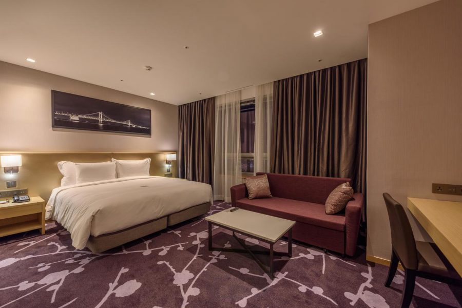 มาถึงโรงแรมหรูใจกลางปูซานอีกหนึ่งที่ ที่ให้บริการห้องพักที่สะดวกสบายสุดๆ มีห้องอาหารสุดหรูที่บริการอาหารเช้าบุฟเฟต์ และยังมีบาร์ และบริการต่างๆ อีกมากมายที่ให้ความสะดวกแก่ผู้เข้าพัก ภายในห้องพักกว้างมาก ตกแต่งสวย มีโต๊ะทำงาน และพื้นที่นั่งเล่นทุกห้องอีกด้วย น่ามาพักสุดๆ
