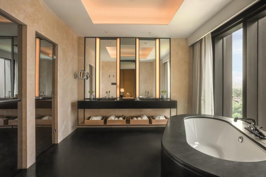 ที่พักสวยปักกิ่ง — Waldorf Astoria Beijing ออกแบบโรงแรมด้วยศิลปะแบบจีนดั้งเดิมผสมผสานกับความทันสมัยของยุคปัจจุบันได้อย่างลงตัว ห้องพักกว้างขวางสวยงามมีระเบียงส่วนตัวโซนห้องพักผ่อนในห้องนอน ห้องน้ำหรูหราด้วยกระจกบานใหญ่ กระเบื้องหินอ่อนเพิ่มความหรูหรา